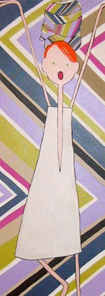 En tout, 30 toiles peintes sous un angle très « textile » : des motifs, des perles, des couleurs. Et pas un seul homme parce qu’elle « ne sait pas les dessiner » se défend l’artiste … Qu’à cela ne tienne : les femmes et les enfants d’abord !