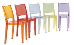 Une chaise totalement transparente, légère, solide, passe-partout, aussi bien pour l’intérieur que l’extérieur, produite en 5 coloris, fête ses 10 ans