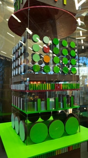 Des éléments multicolores très graphiques dignes de maîtres du design, disposés dans une vitrine de verre pour éviter les tentations gourmandes. Cruel !